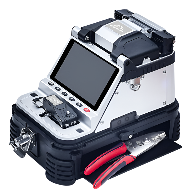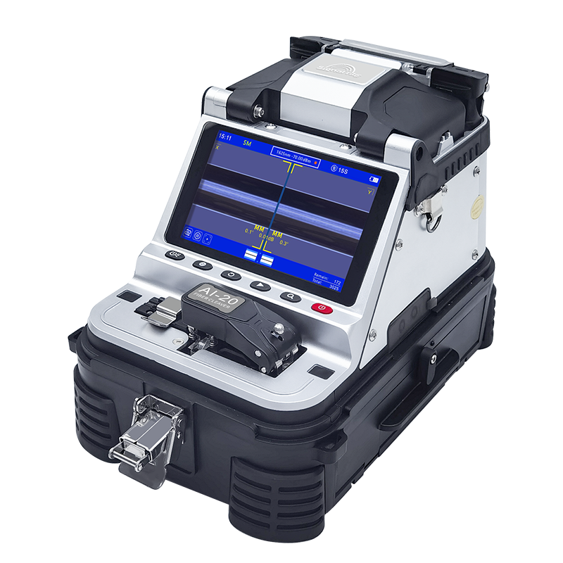 The AI-20, the fourth generation fiber fusion splicer developed by Signal fire, is the latest generation of fiber fusion splicer designed for full link integration. It combines Signal fire's latest research and development of a delayed return electric one-step cleaver with fiber fusion splicing, while integrating OPM and VFL functions. Combined with a nine in one signalfire fiber stripper, a combinable workbench and worktable, it truly becomes a compact, lightweight, and easy to operate fiber fusion splicer, which will greatly improve your work efficiency.